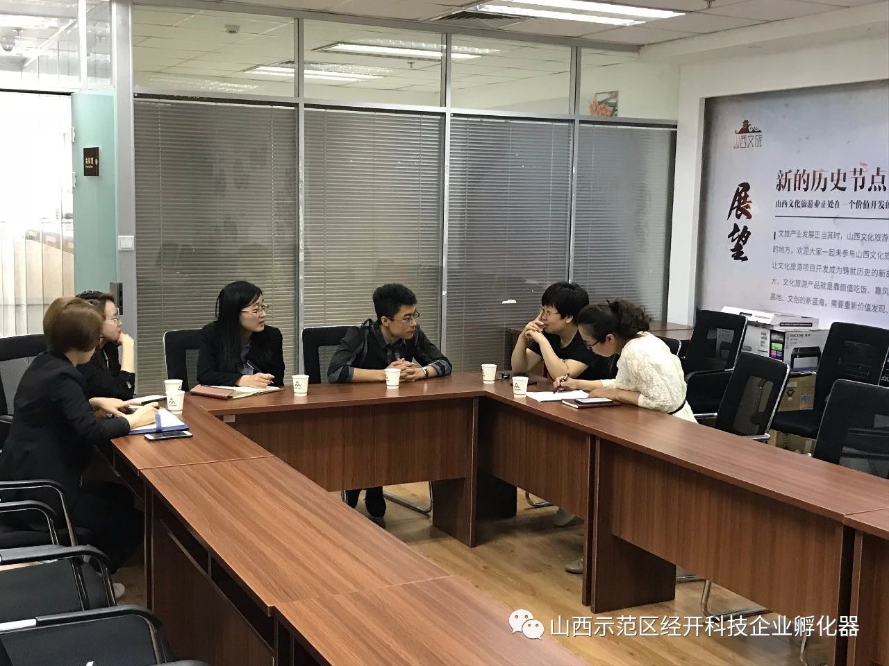 孵化器黨支部負責人對支部?jì)赛h建工作做詳細匯報并陪同參觀(guān)辦公環(huán)境